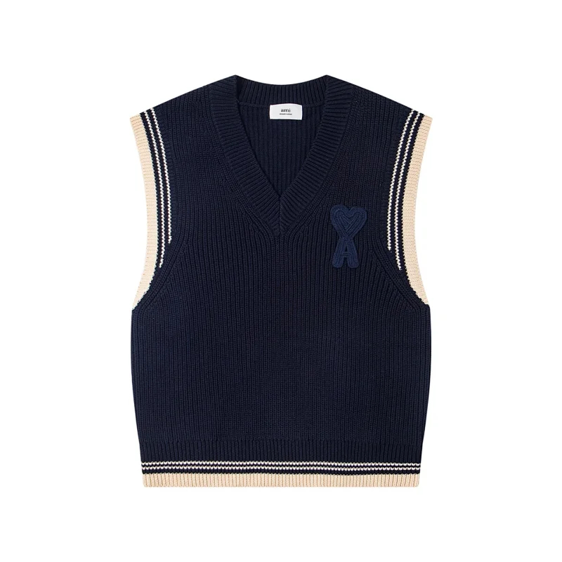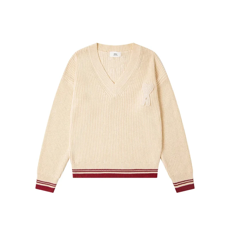 AMIPARIS Knitted Striped V-Neck Drop-Shoulder Wool Sweater-5156
