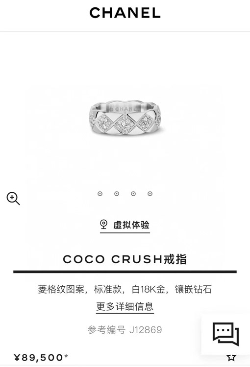 Home > Chanel diamond pattern white gold ring-3753