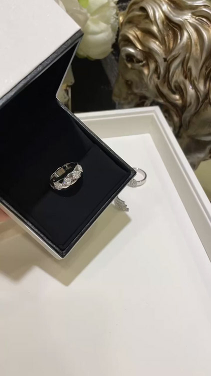Chanel diamond pattern white gold ring-3753