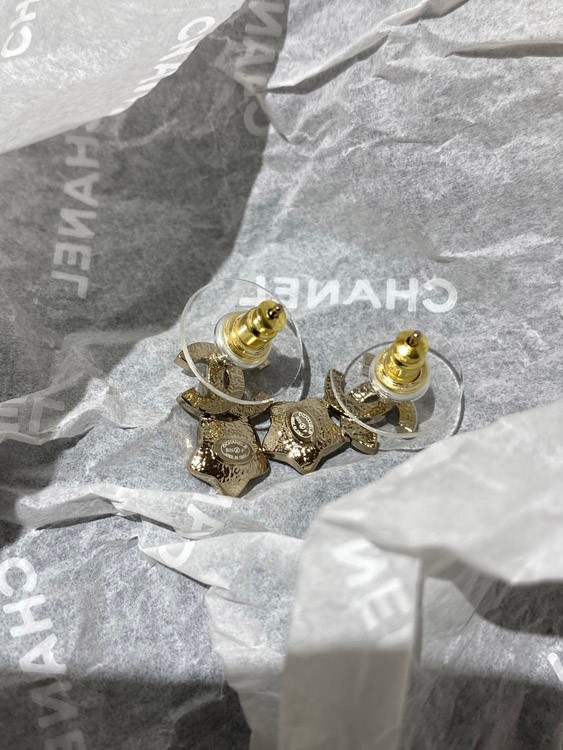 Chanel pink star light gold earrings-3929