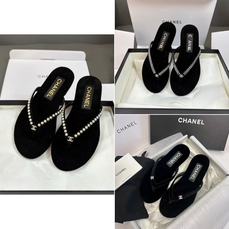 Chanel rhinestone and pearl embellished velvet flat thong sandals-5697