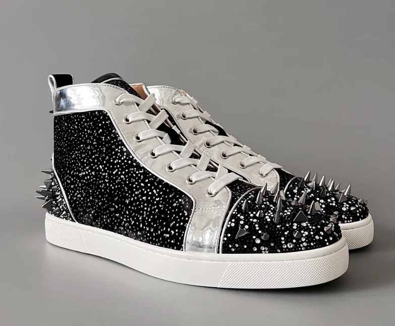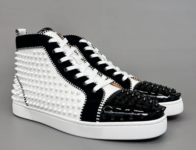 Christian Louboutin CL calfskin round toe lace-up high-top sneakers-2963