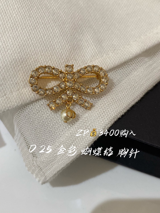 Dior full diamond bow hanging bead brooch-3954