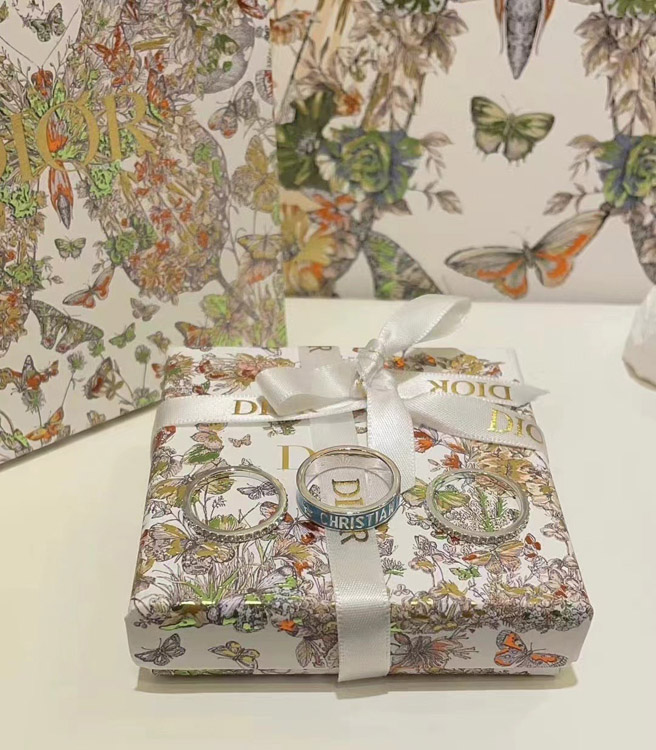 Dior gold letter blue enamel diamond ring set three-piece set-3710