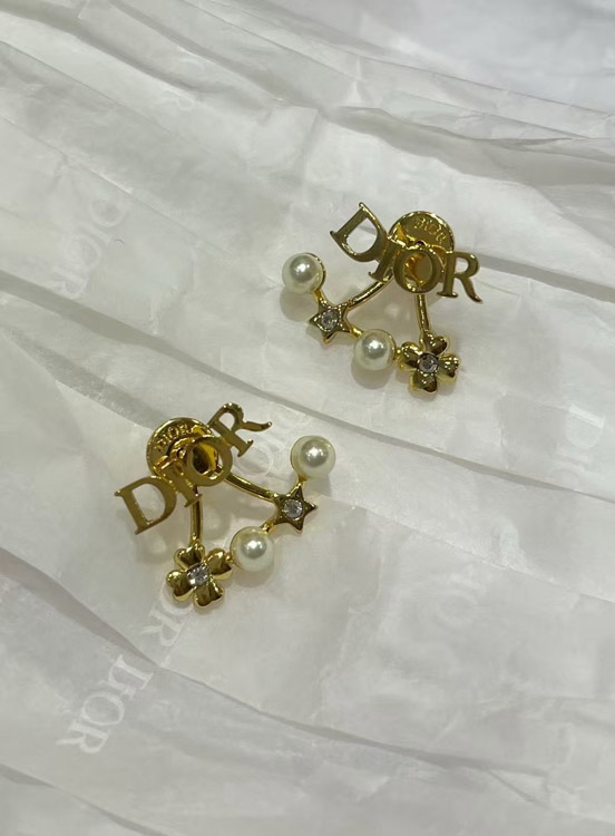 Dior gold star pearl double ball earrings-4017