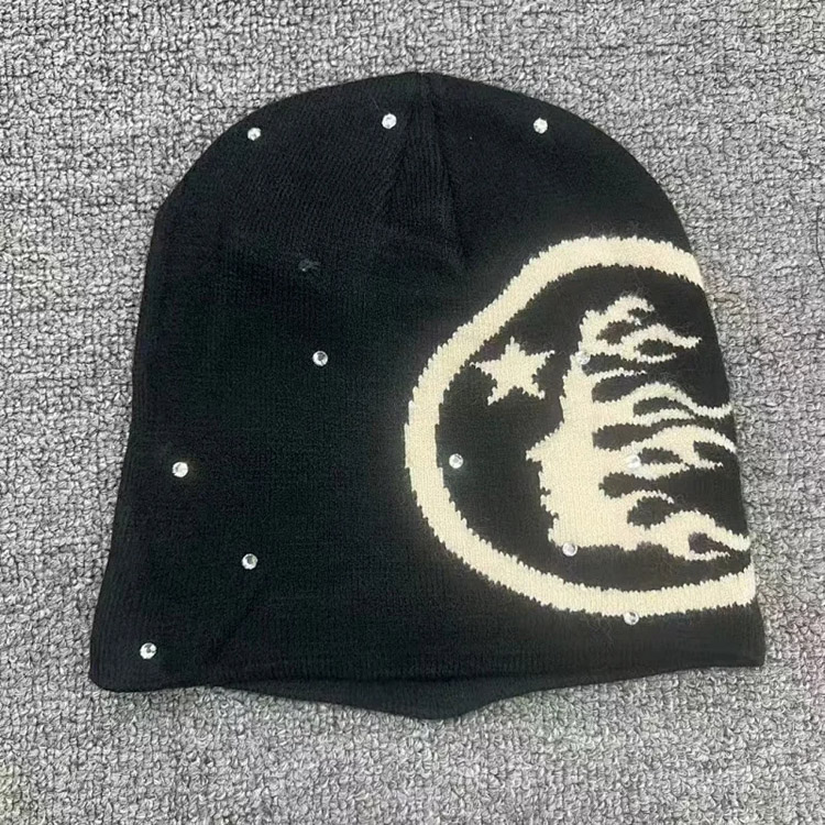 Hellstar rhinestone embroidered logo baseball cap/knit hat-5083
