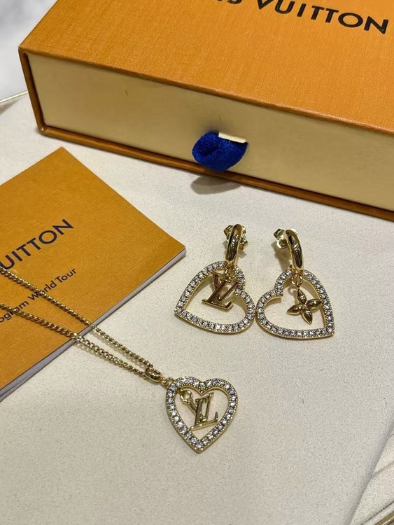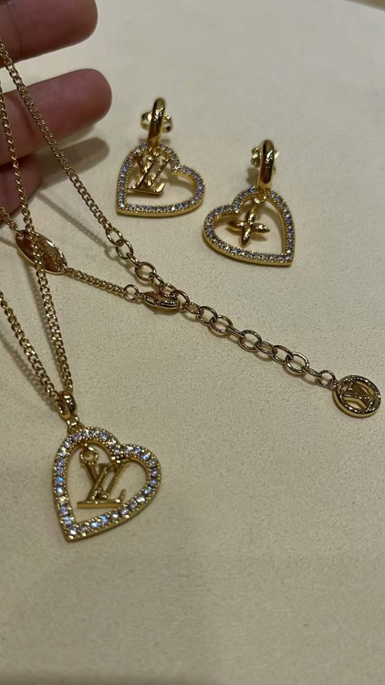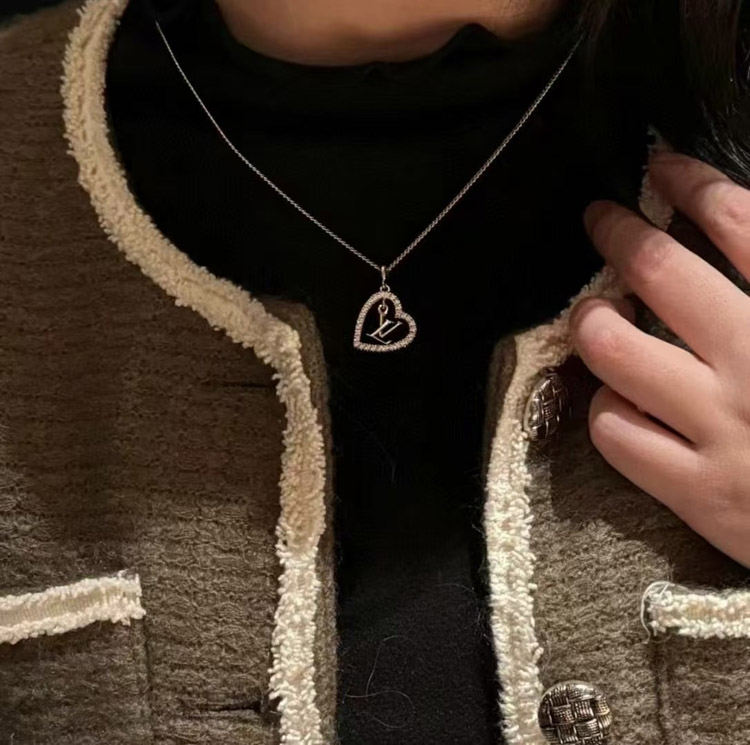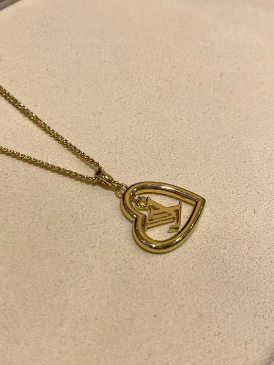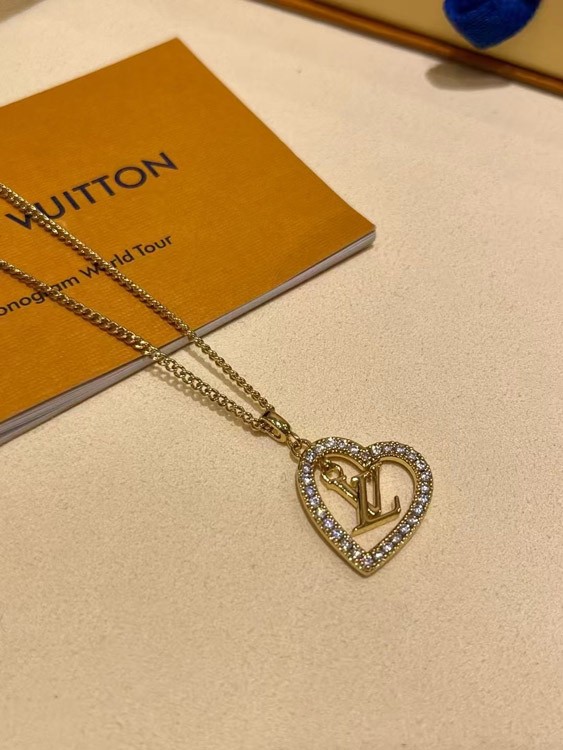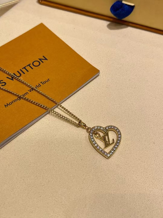 Louis Vuitton LV gold letter hollow diamond heart necklace-3725