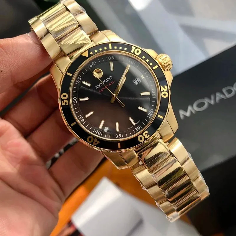 Movado Swiss 4.1CM black gold dial gold strap men's sports watch (40 styles)-2082
