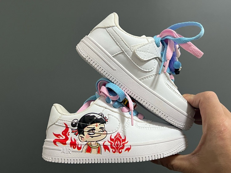 Nike Air Force 1 lace-up Velcro cartoon children's shoes-4127