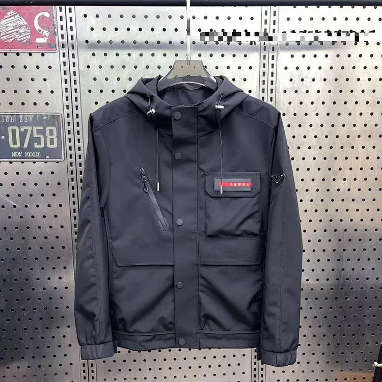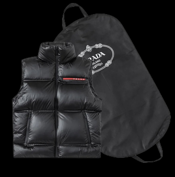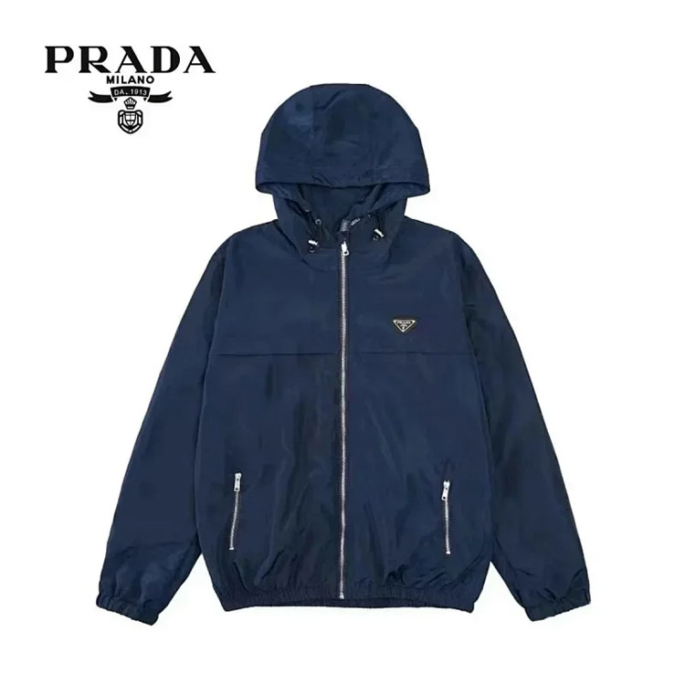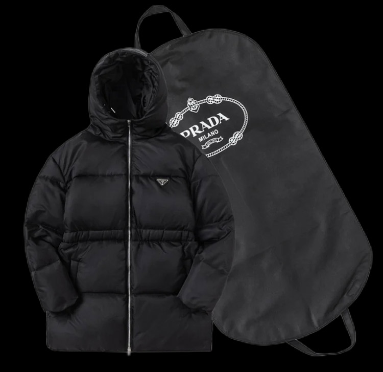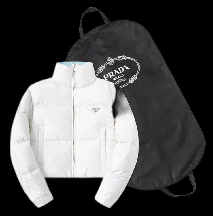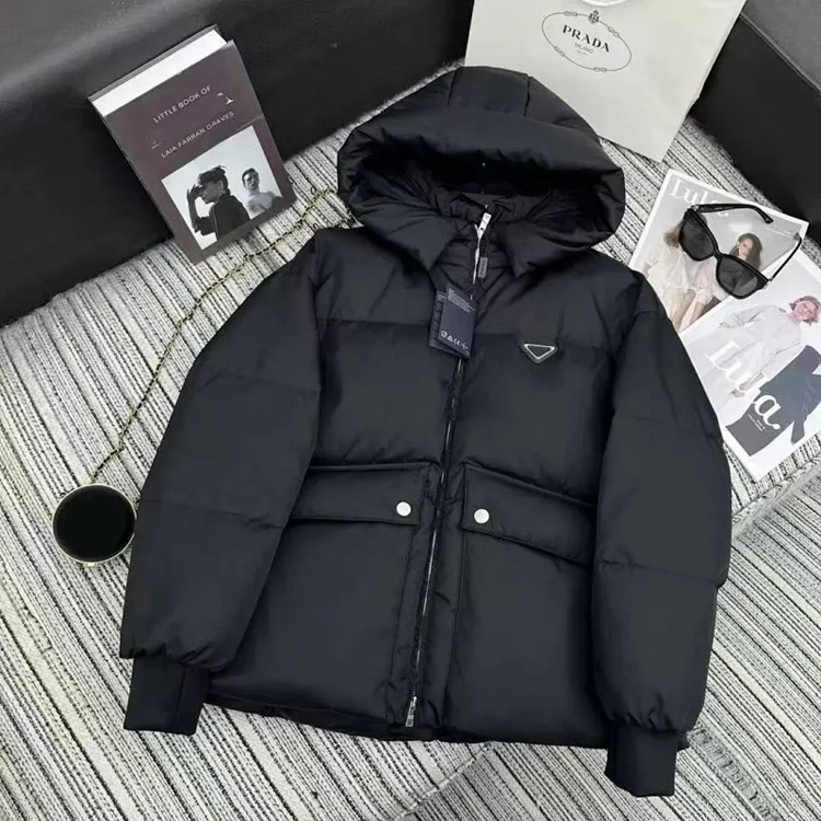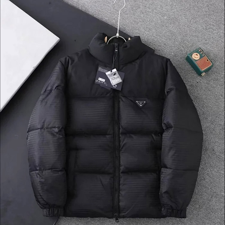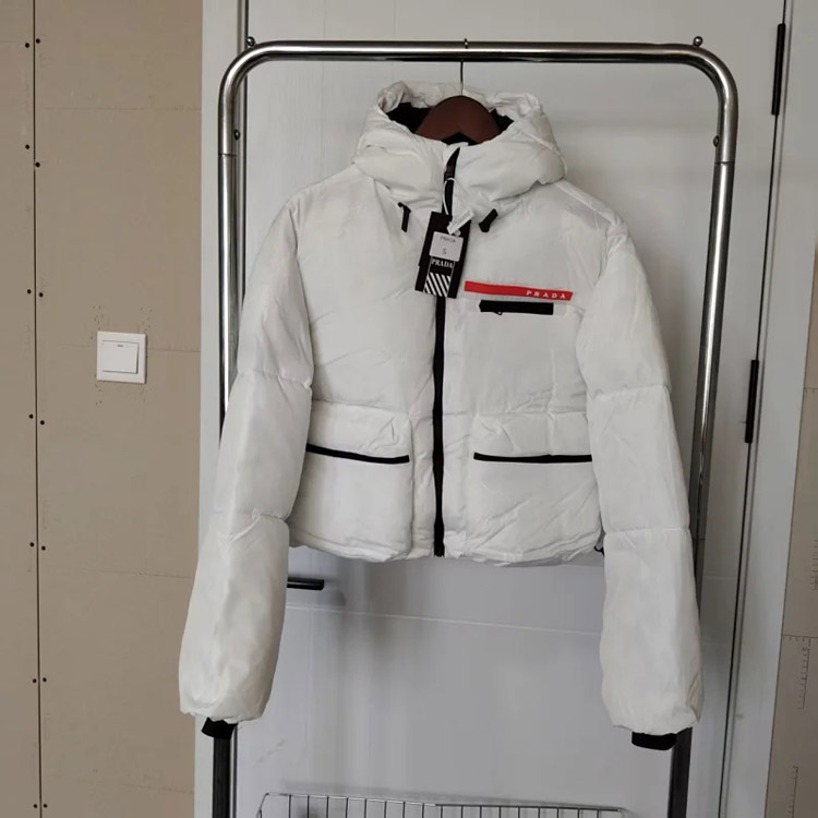 PRADA Prada Logo Badge Lapel Zipper Long Sleeve Down Jacket-4285