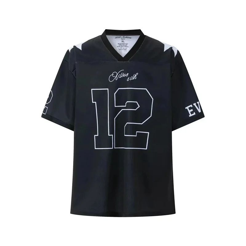 Spliced ​​letter print short-sleeved T-shirt digital mesh sports jersey-1908