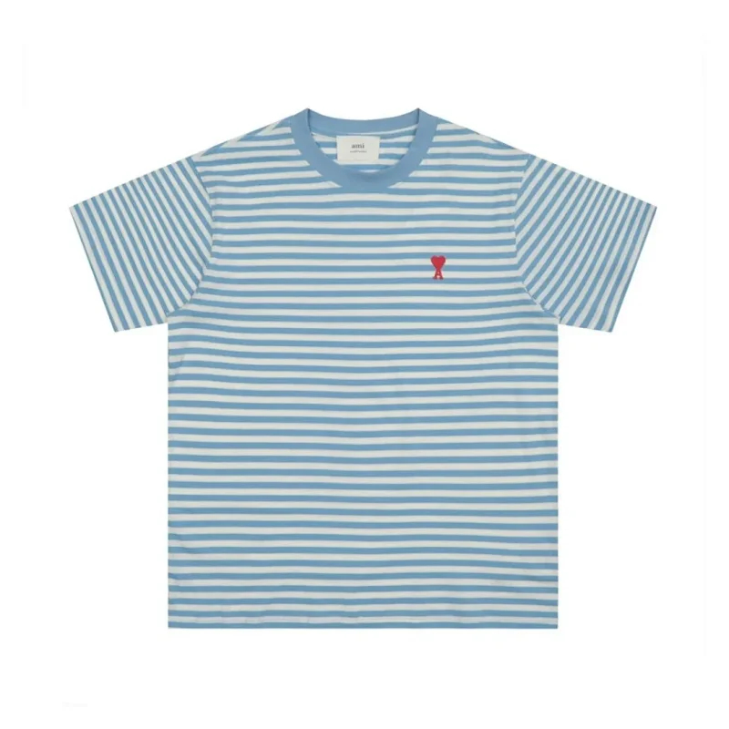 AMIPARIS Classic Striped Short-Sleeved T-shirt with Embroidered Heart Design-5197