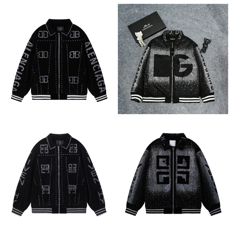 Balenciaga Givenchy velvet embroidered rhinestone men's casual loose baseball jacket-5328