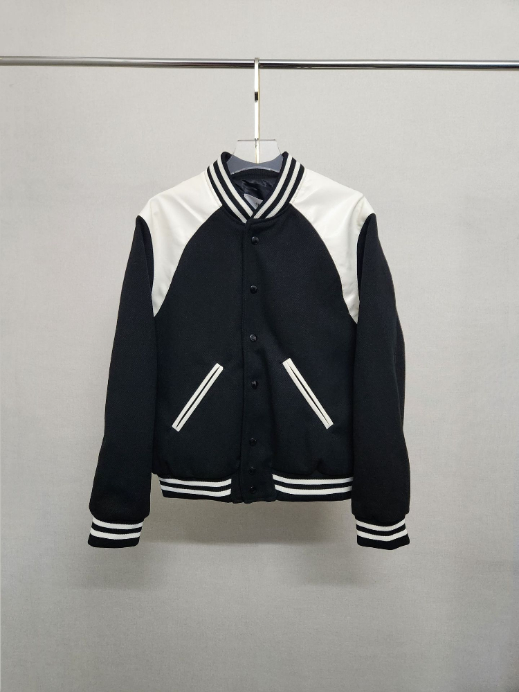 Celine classic wool and leather baseball jacket-5460