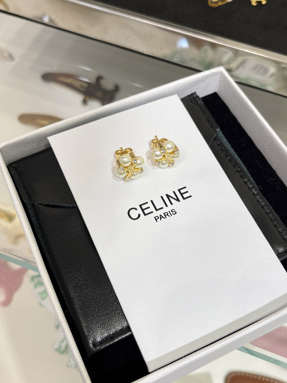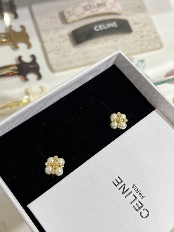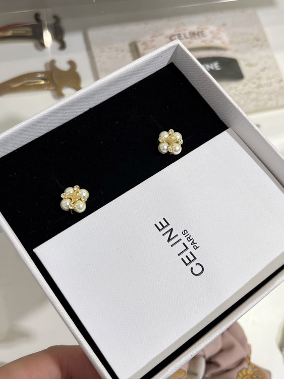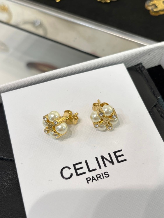 Celine Pearl Gold Arc de Triomphe Earrings-3897