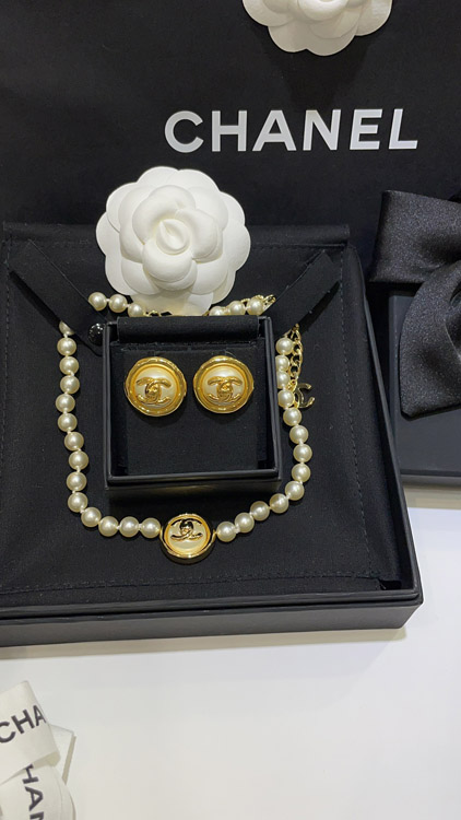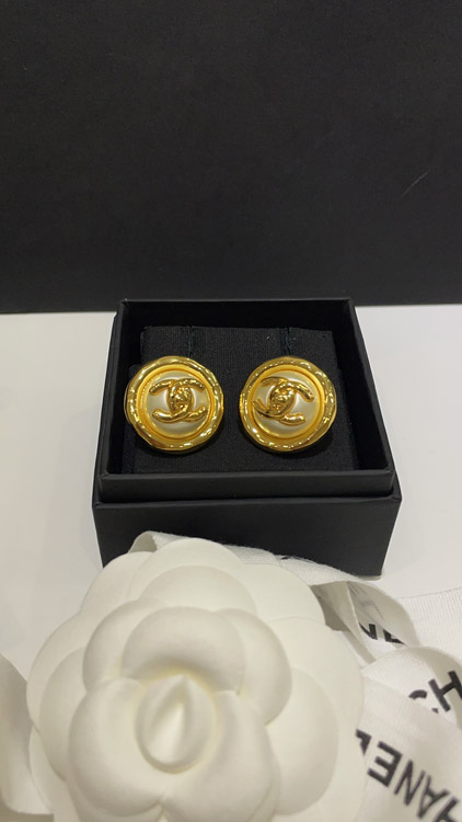 Celine pearl round button gold backpack buckle double C earrings-3899