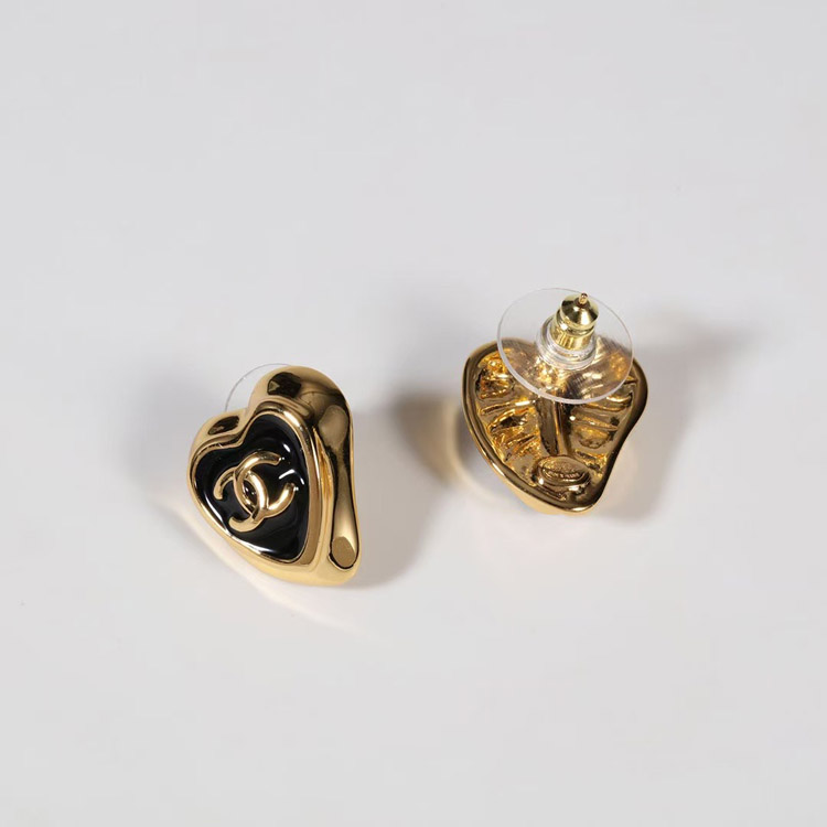 Home > Chanel black enamel love double C gold edge earrings-3739