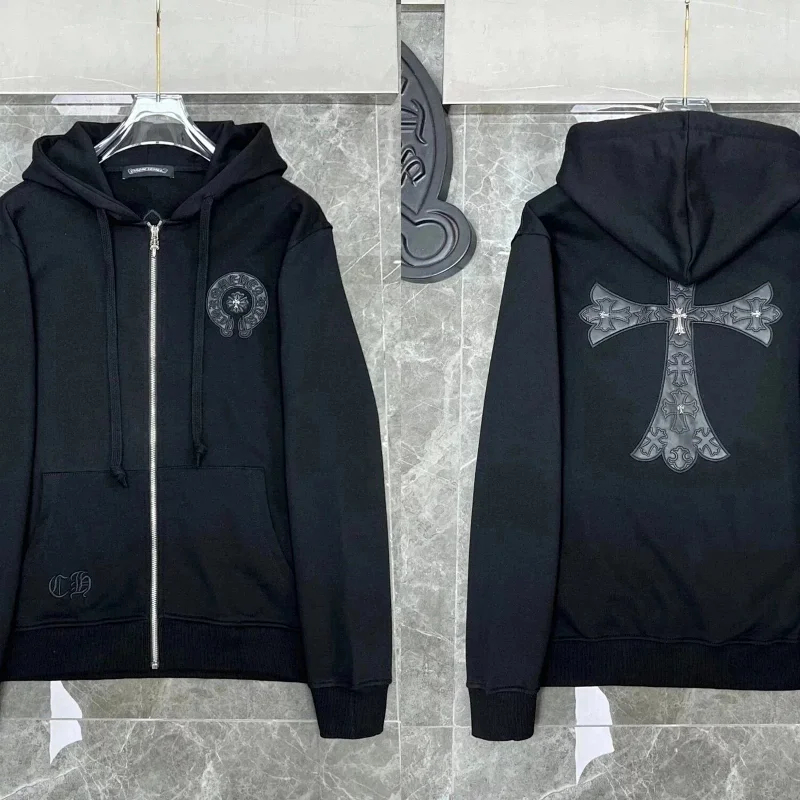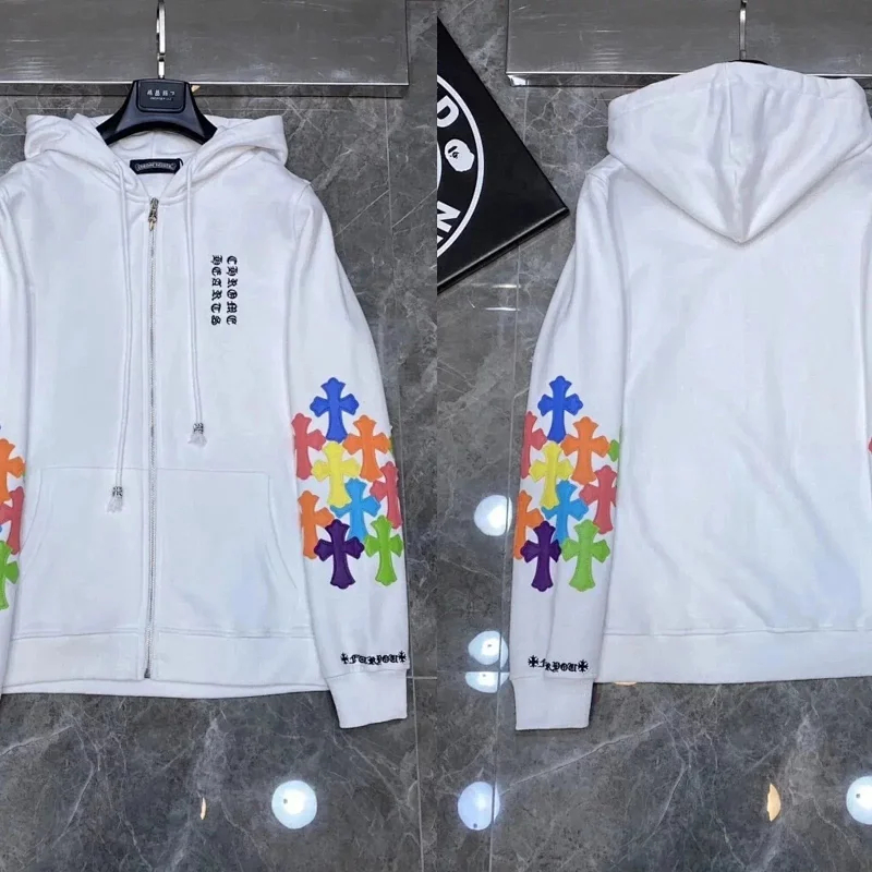 Home > Chrome Hearts CH 2025 Colorful Cross Leather Sanskrit Hooded Sweatshirt for Casual and Versatile-2516