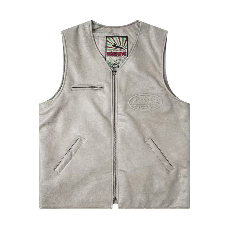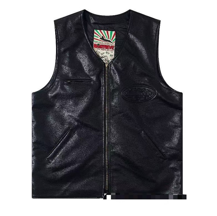 Corteiz Solid Color Lapel Collar Zip-Up Long-Sleeve Leather Jacket-5029