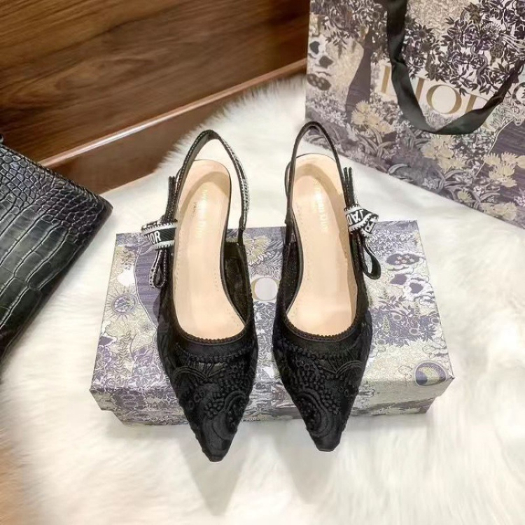 Dior's new lace pointed-toe slingback heels with a thin heel-5614