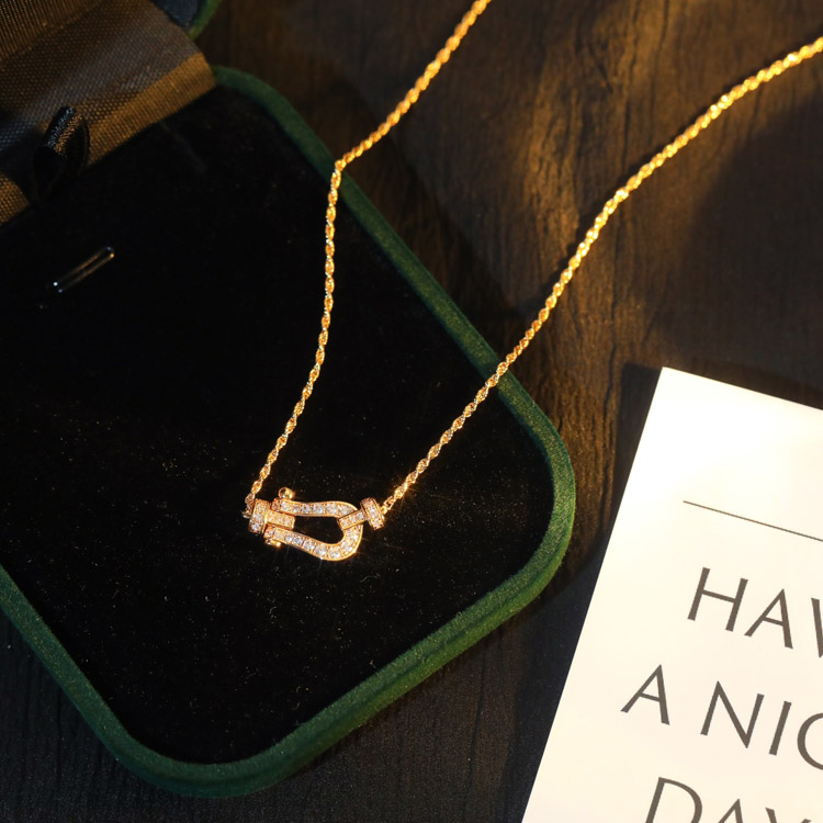 Home > Feidan gold and silver horseshoe half diamond necklace-3774