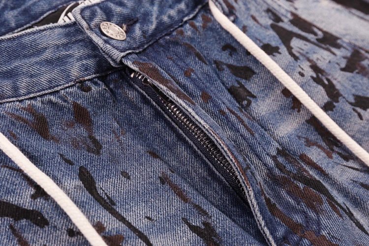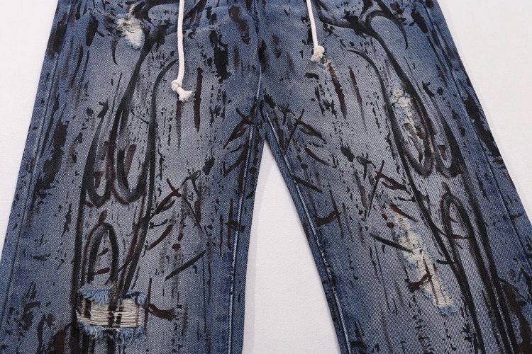 Hellstar Splatter Graffiti Monkey Washed Blue Casual Loose Straight Jeans-4946