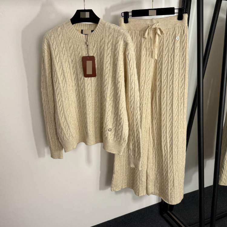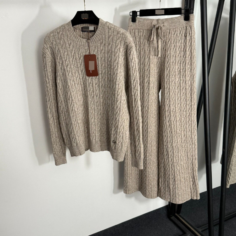 Loro Piana high-end knitted cable-knit striped sweater and wide-leg trousers-5401