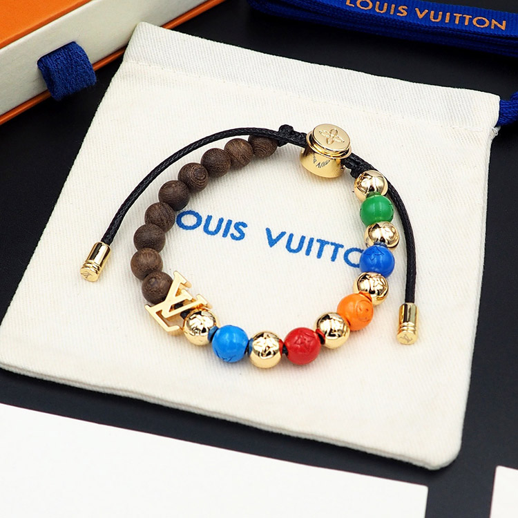 Louis Vuitton LV adjustable cord embellished wooden inscription metal beaded bracelet-3949