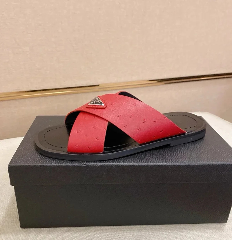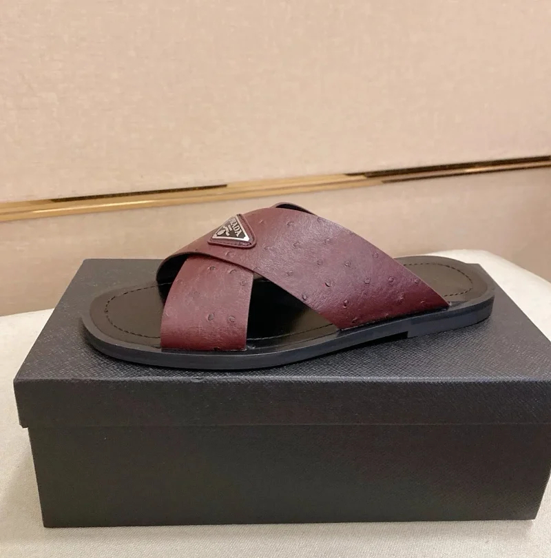 Prada Ultralight Breathable Leather Cross Slippers-5553