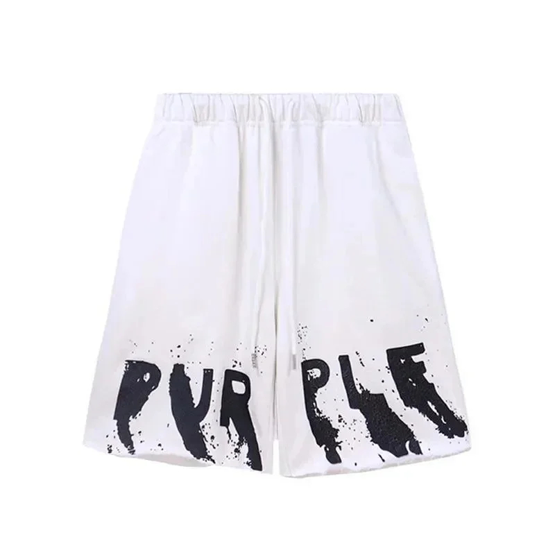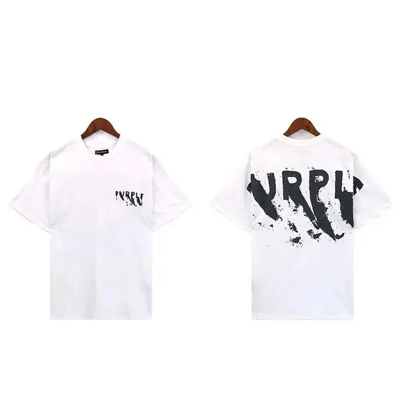 Puerple letter dripping print short-sleeved T-shirt for men and women loose cotton-1801