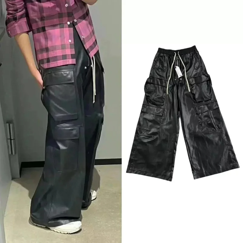 Rick Owens vintage high-end multi-pocket loose shiny leather pants-2461