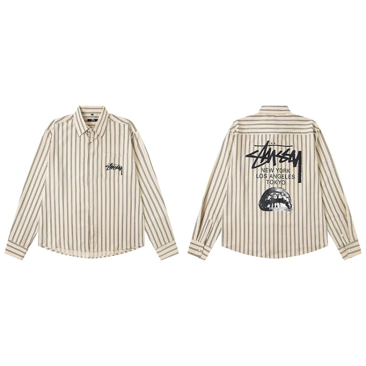 Stussy new loose-fitting casual Japanese-style long-sleeved printed shirt-5275