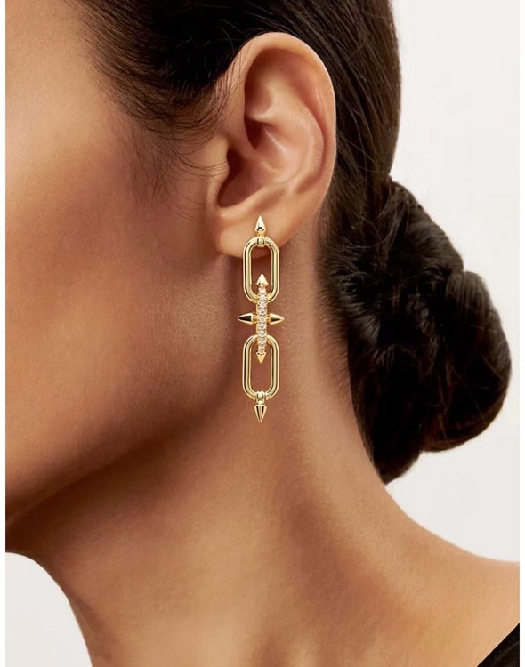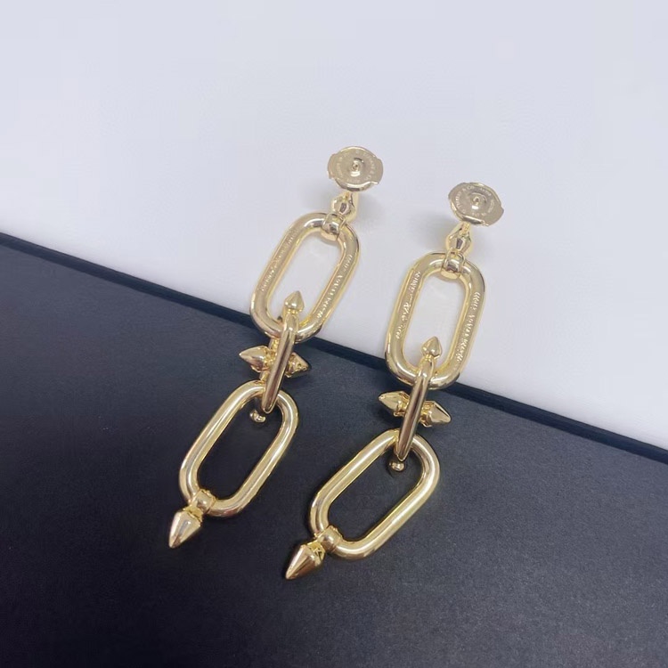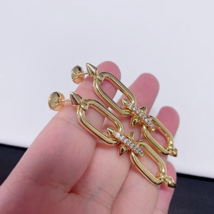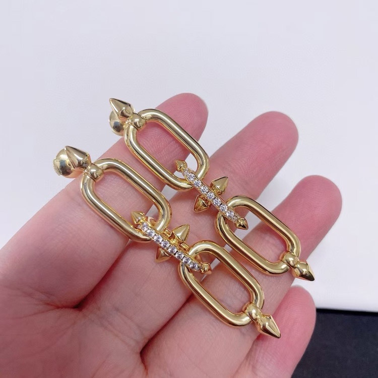 Tiffany diamond double ring chain earrings-4018