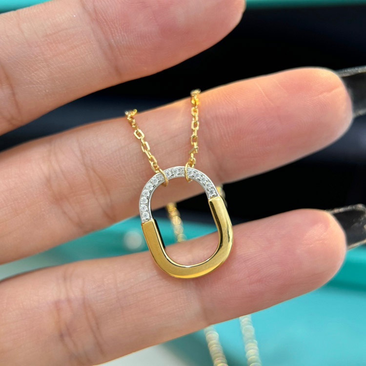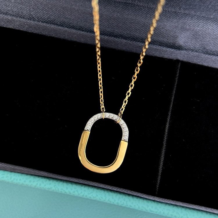Tiffany mini U-shaped lock half diamond two-tone necklace-3962