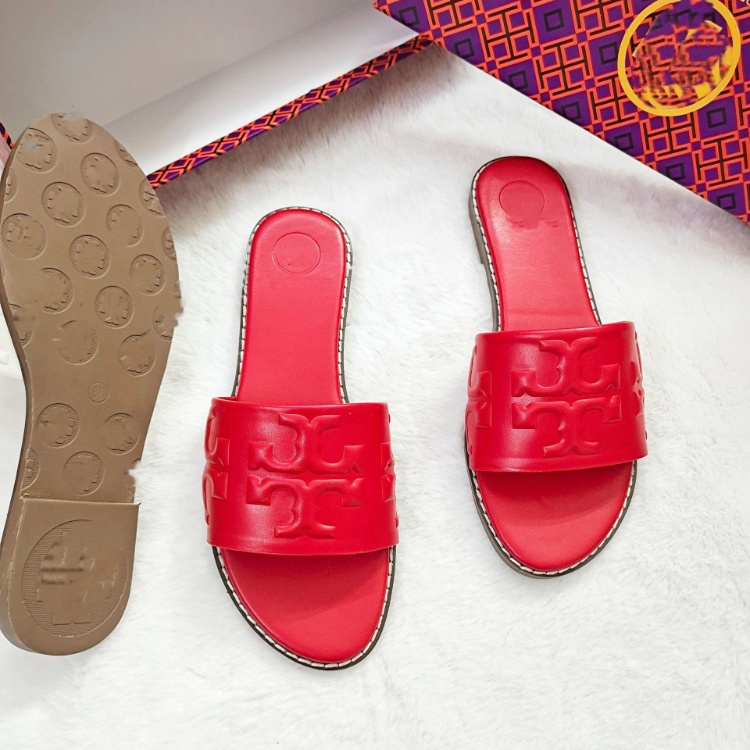 Tory Burch new all-leather flat slide sandals-5663